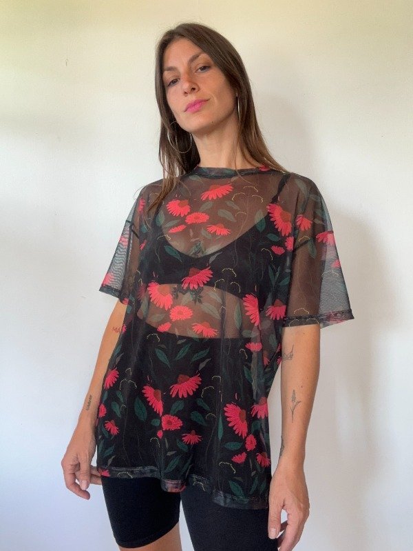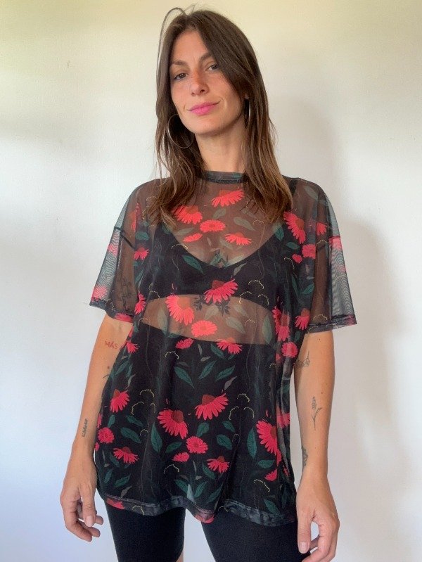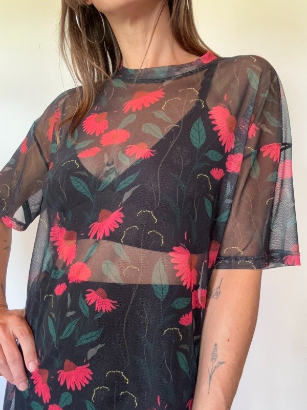 Remeron oversize de microtul subimado con estampa Equinacea ilustrada por Belen Santis para Mas Amor Interior.