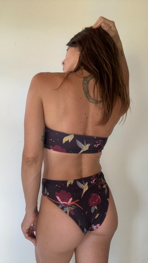 Top strapless con pinzas laterales para mejor sostén con estampa AIRE ilustrada por Belen Santis para Mas Amor Interior.