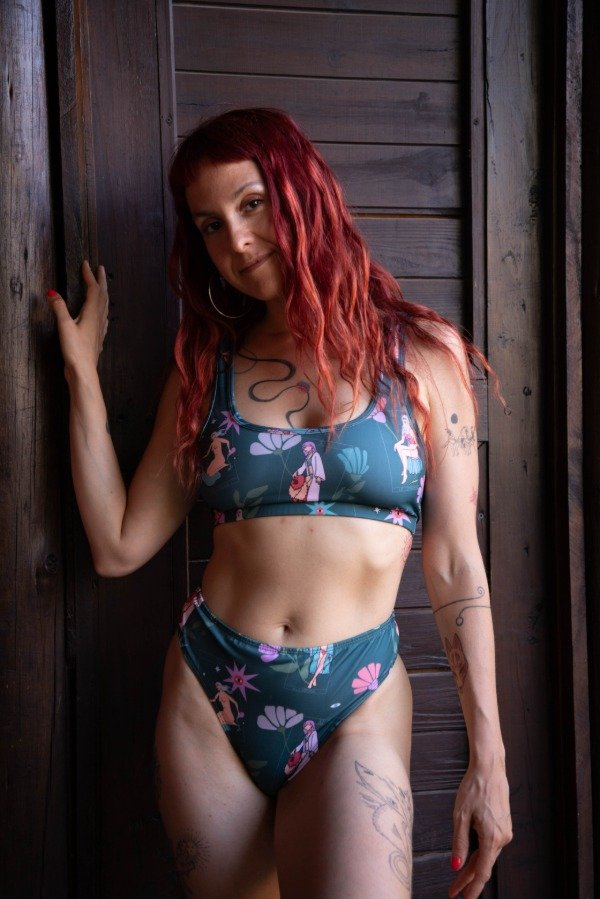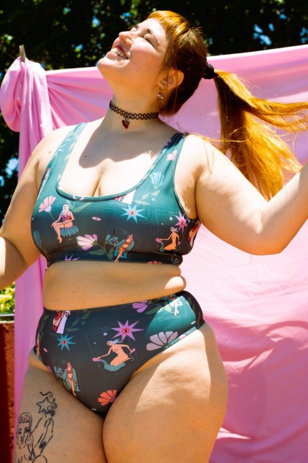 Top de tricot con lycra con proteccion UV, estampa propia Arcanas ilustrada por Cloe Weiss.