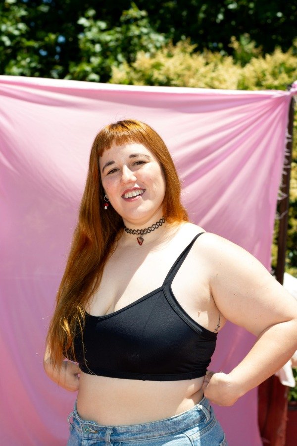 Corpiño Delfina de tricot con Lycra negro forrado en la delantera.