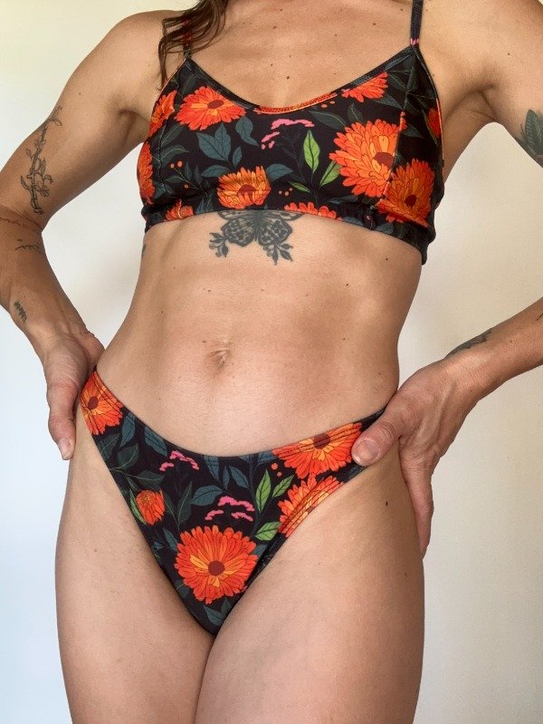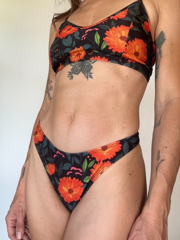 Less de tricot con Lycra con estampa CALENDULA ilustrada por Belen Santis para Mas Amor Interior.